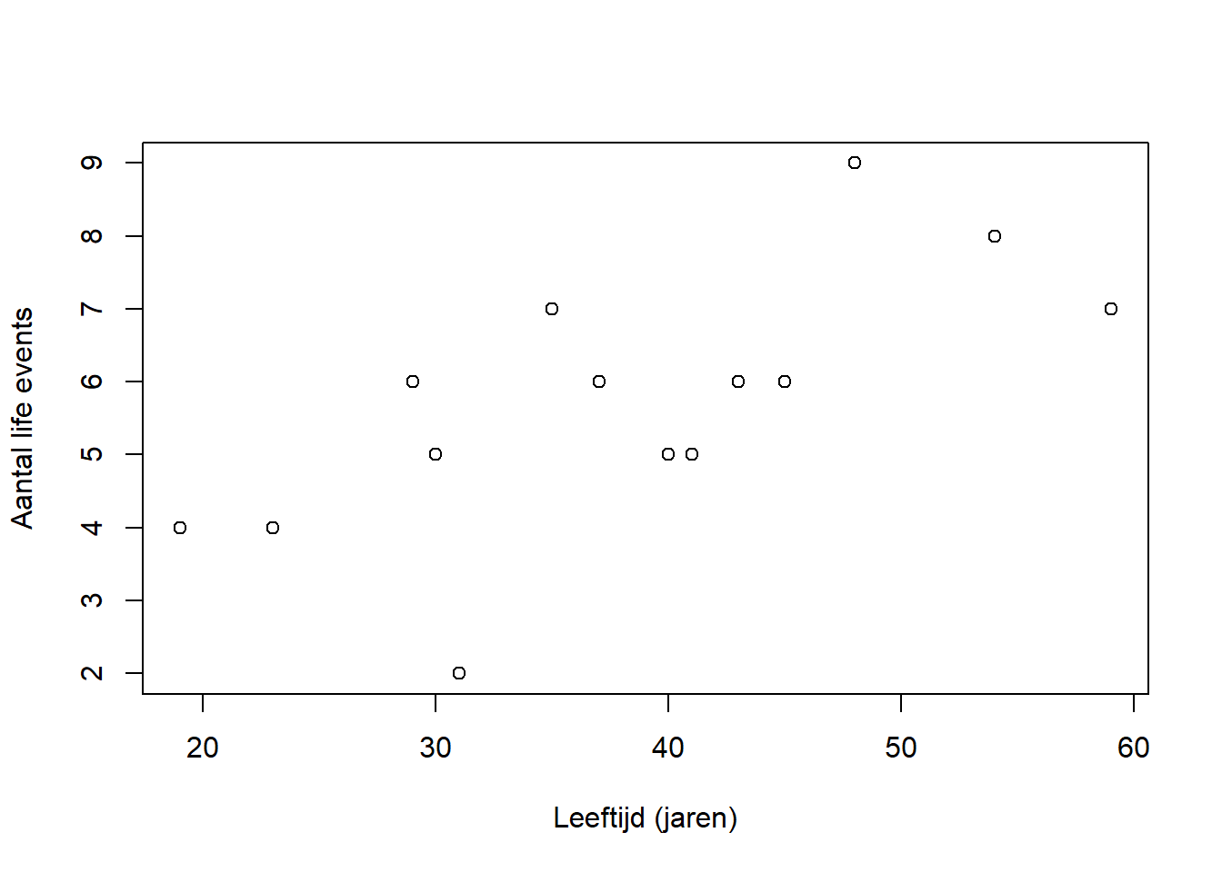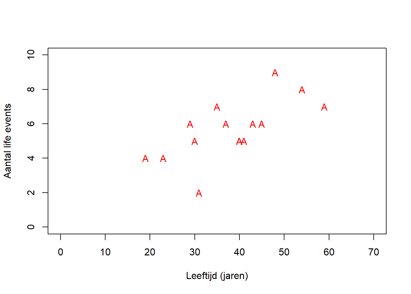 We zien dat de twee variabelen tegen elkaar afgezet worden in een grafiek. Blijkbaar is dit wat