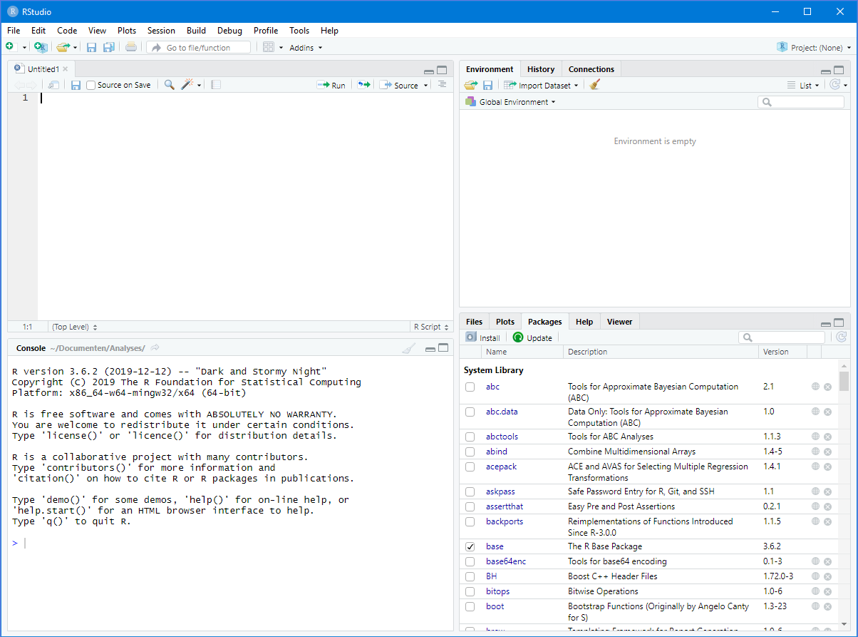 Tot nu toe hebben we gewerkt vanuit de console. Eerder werd al genoemd dat je dit in de praktijk niet zoveel zult doen, maar vanuit een R-script zult werken. Hoog tijd om de daad bij het woord te voegen, en de editor eens te verkennen. |